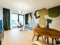 The proposed apartment has a usable area of 55 sqm, and the interior space is divided into living room, 1 bedroom, kitchen, 1 bathroom, and the interior partitions offer multiple storage areas.