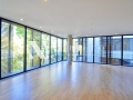 The apartment has five rooms with a functional partition and wide glazed spaces, resulting in an airy and bright space.