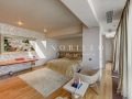 The bedrooms are served by spacious bathrooms, fully furnished and equipped, with finishes at the highest standards. The building is configured so as to offer a balance between relaxation and socializing areas. The kitchen is equipped with household appliances that meet the most demanding requirements. This penthouse is the expression of the perfect harmony between space, aesthetics and functionality.