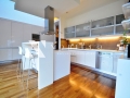 Penthouse is located on the top floor of the building, has a useful surface of 250 sqm and a total surface of 375 sqm. The apartment is divided into: living room 60 sqm, 3 bedrooms, partially open kitchen, 3 bathrooms and 2 terraces in surface of 75 sqm. Penthouse has direct access from the elevator and is positioned on the entire 4th floor, benefits of premium class finishes, and the kitchen is fully furnished and equipped.